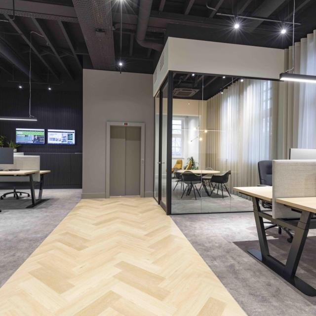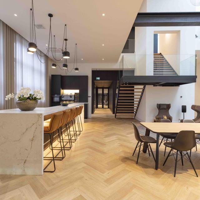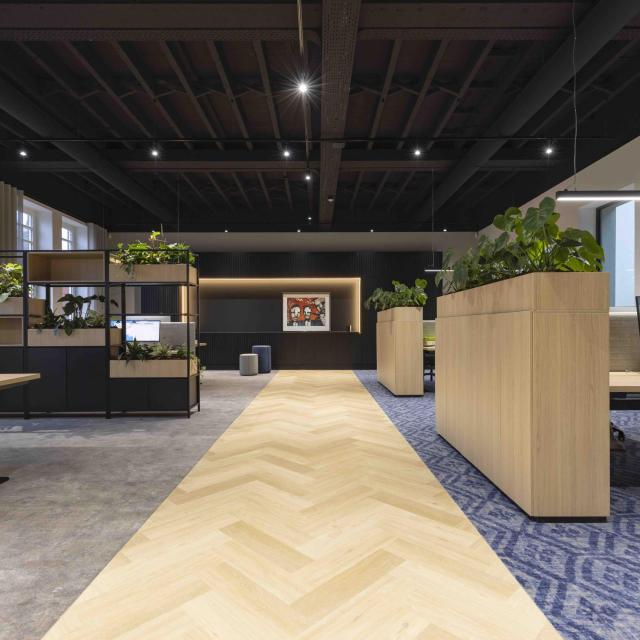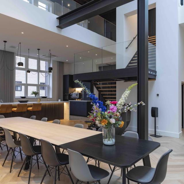 Dit karakteristieke gebouw is verduurzaamd en getransformeerd tot een modern kantoorgebouw. Authentieke elementen zoals de houten balkconstructie, originele kozijnen en zelfs de oude goederenlift zijn behouden en geïntegreerd in het nieuwe ontwerp.